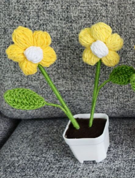 + Free ShippingFlor puff tejida a crochet en maceta, tamaño aproximado de 19 cm.